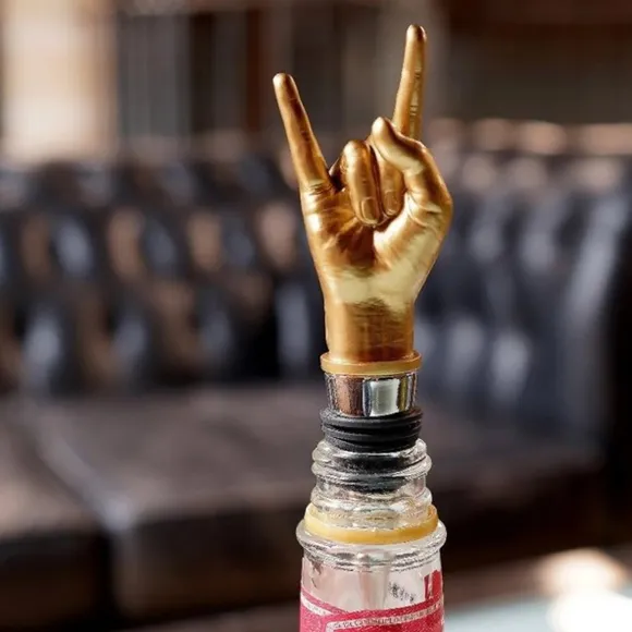 Ce Bouchon De Bouteille Doré En Forme Du Célèbre Signe You Rock Viendra Fermer Vos Bouteilles Avec Une Allure Rock &Amp; Roll ! De Quoi Épater Vos Convives.Convient Aux Bouteilles De Vin Et De Liqueur.