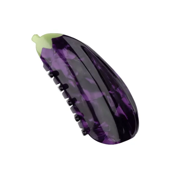 Cette Pince À Cheveux Aubergine Aux Tons Violet Intense Couronnée D’Un Mignon Chapeau Vert Illuminera Votre Chevelure ! Ce Bijou De Tête À Effet Nacré Ne Passera Pas Inaperçu, Et Vous Assurera Une Coiffure En Deux Temps Trois Mouvements. Cette Pince Est Réalisée En Acétate De Cellulose Recyclée Et Biodégradable.