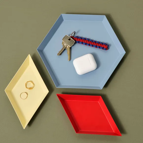 Cette Collection De Plateaux Kaleido Pour Hay Repose Sur L’Expérience De Clara Von Zweigbergk En Tant Que Graphiste Et Origamiste. Son Sens Intuitif De La Combinaison Des Couleurs Se Manifeste Dans Une Myriade De Formes Et De Nuances. Cette Série De Plateaux En Acier Aux Formes Géométriques Peut Être Utilisée Individuellement Comme Éclats De Couleurs Inattendues Ou Rangée Les Unes Dans Les Autres Pour Créer Des Constellations Fonctionnelles Et Imaginatives. Disponible En Version Violet, Jaune Dusty, Bleu Foncé Et Bleu Clair. Plusieurs Tailles Disponibles.