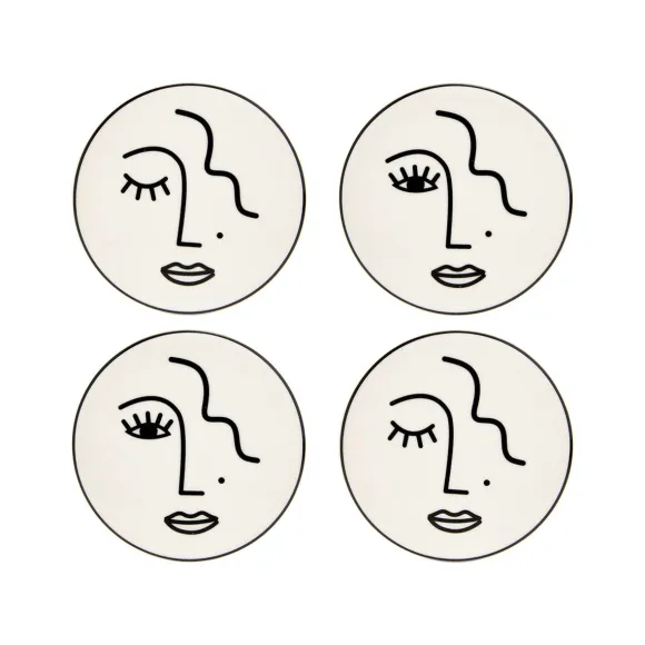 Apportez Des Touches De Monochrome À Votre Cuisine Avec Cet Ensemble Arty De Quatre Sous-Verres Abstract Faces. Le Moderne Minimaliste Rencontre Des Formes De Visage Géométriques. Idéal Pour Ceux Qui Apprécient La Simplicité.