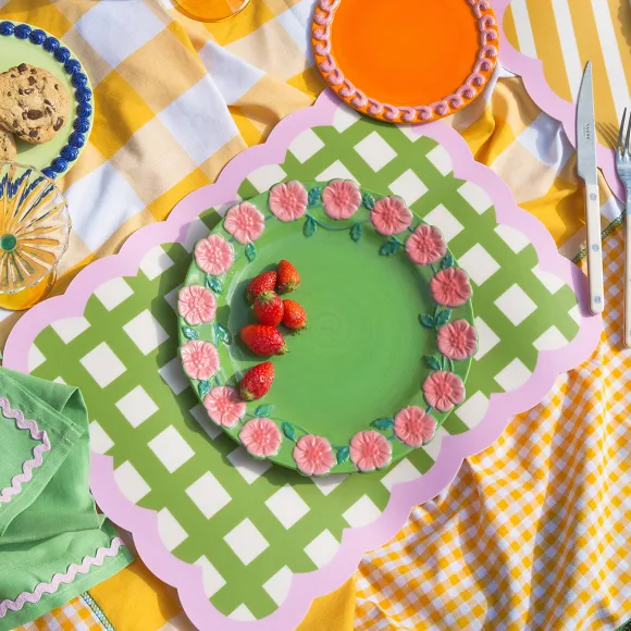 Direction L’Italie, Ambiance Dolce Vita Garantie ! Apportez Une Touche De Soleil Et De Couleur À Votre Table Avec Notre Collection Exclusive De Sets De Table Biscotti. Parfait Pour Ajouter Une Touche De Couleurs Vives À Votre Table, Ce Set De Table Combine Des Bordures Roses Incurvées Avec Des Carreaux Aux Teintes Kakis Audacieuses. Fabriqué En Vinyle, Il Est Facile À Nettoyer Et À Entretenir, Pour Que Vos Repas Restent Beaux Et Agréables. Choisissez Parmi Plusieurs Modèles, Tous Fièrement Fabriqués En France.
