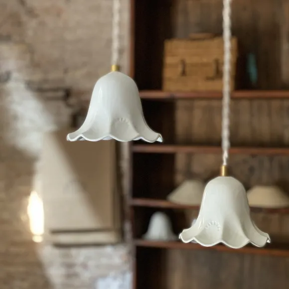 Douce Et Féminine Clochette De Porcelaine Biscuit, Le Luminaire Lili Imaginée Par Enamoura Émeut Par Ses Formes Enfantines. Elle Rappelle Les Suspensions D’Antan Réalisées De Verre Ou D’Opaline. Coulée À La Main En Petite Série À Limoges, Elle Se Glisse En Tête De Lit, Près D’Un Miroir Chiné Dans Un Cabinet De Toilette Ou Illumine Un Petit Coin Lecture. Disponible En Version Baladeuse Et Suspension.