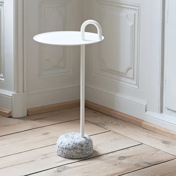 Table D’Appoint Bowler En Acier Et Granit – Blanc Creme