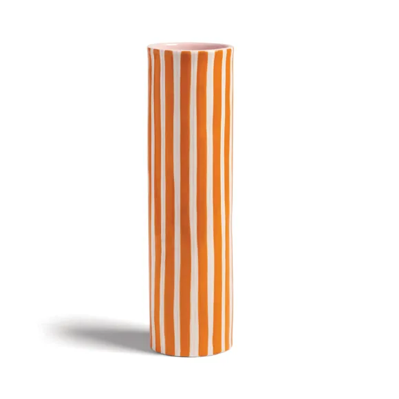 Ce Vase Rayé Rose Et Orange De &Amp;Klevering Viendra Ajouter Du Style À N’Importe Quelle Table. Le Motif Rayé Est Peint À La Main Et Est De Forme Irrégulière, Donnant Au Vase Un Look Unique. Parfait Pour Des Fleurs, Des Branches Ou Pour Ranger Des Ustensiles De Cuisine.