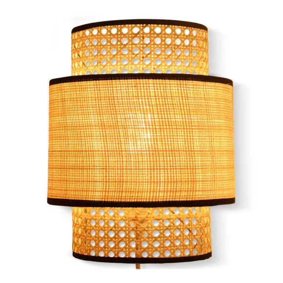 Abat-Jour Applique Murale Solaire Cannage Naturel / Noir