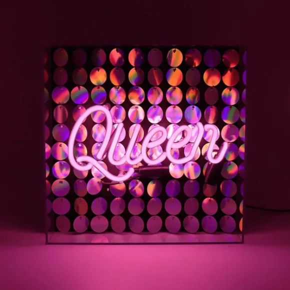 Apportez De La Luminosité Avec Cette Boîte À Néon Queen En Acrylique Résolument Pop !Ce Néon Rose ‘Queen’, Disposé Dans Une Boîte En Acrylique Brillant Transparent, S’Illumine Sur Un Fond En Paillettes Irisées. La Pièce D’Éclairage Parfaite Pour Votre Maison Ou Comme Cadeau Unique ! Ces Néons En Verre Ne Chauffent Pas Et Ont Une Faible Consommation D’Énergie À Seulement 12 – 24W. Disponible En Plusieurs Modèles.