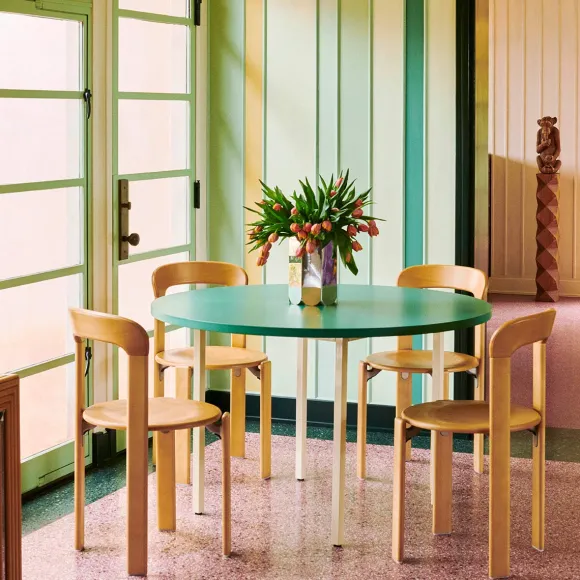 Se Basant Sur La Collection Rey Originale Conçue Par Le Designer Suisse Bruno Rey En 1971, Hay S’Est Associé À Dietiker Pour Relancer La Chaise Rey. Avec Ses Bords Arrondis Distinctifs Et Son Dossier Incurvé, C’Était La Première Chaise À Être Brevetée Avec La Connexion Bois-Métal Sans Vis Unique De Dietiker Et Est Devenue L’Une Des Chaises Suisses Les Plus Réussies De Tous Les Temps. Sa Construction Solide, Sa Solidité Et Sa Conception Empilable Lui Confèrent Une Qualité Intemporelle. La Chaise Emblématique A Été Modifiée Dans De Nouvelles Dimensions Et Combinaisons De Matériaux Pour Répondre Aux Exigences Du Style De Vie Contemporain.
