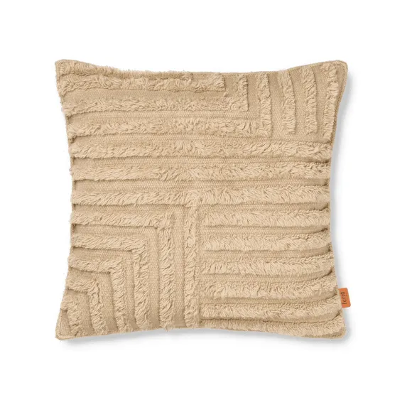 Coussin En Laine Plissé Carré Sable Clair De Ferm Living, S’Inspirant Des Lignes Épurées L’Architecture Moderne, Ce Coussin Présente Une Expression Douce Et Discrète. Tissé À La Main À Partir De La Laine De Nouvelle-Zélande, L’Avant Du Coussin Est Un Mélange De Laine À Poils Hauts Et De Laine Tissée À Plat. L’Arrière Du Coussin Est Tissé À Plat. Le Coussin Est Complété Par Des Détails Complexes De Surpriqûre Le Long Des Bords.