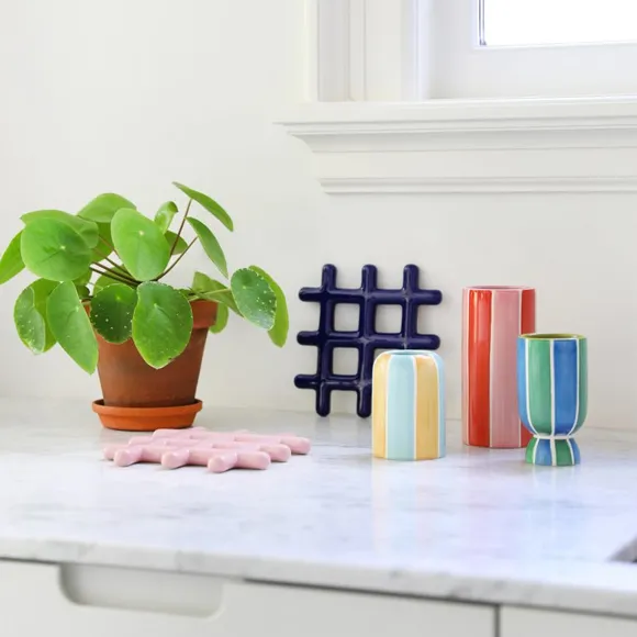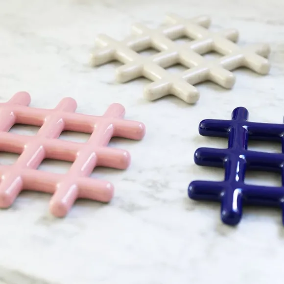Protégez Votre Table Préférée Des Dommages En Utilisant Ce Dessous-De-Plat Grille Rose En Grès, Signé &Amp;Klevering. Sa Forme Géométrique, Inspirée Des Technique De Tressage, Combinée À Sa Couleur Pastel, Adoucira Votre Table. Disponible En Plusieurs Couleurs.
