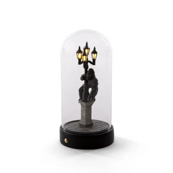 Il Arrive En Ville…Imaginée Par Marcantonio, La Lampe À Poser «My Little Kongâ Offre Une Scène Miniature Sous Un Dôme De Verre, Semblant Tirée D’Un Film De Science-Fiction Des Années 80. Le Protagoniste De La Jungle Est Arrivé Dans La Ville Et Veille Sur Le Quartier Depuis Son Réverbère. Parfait Pour Une Touche Ludique Et Culte Chez Soi !