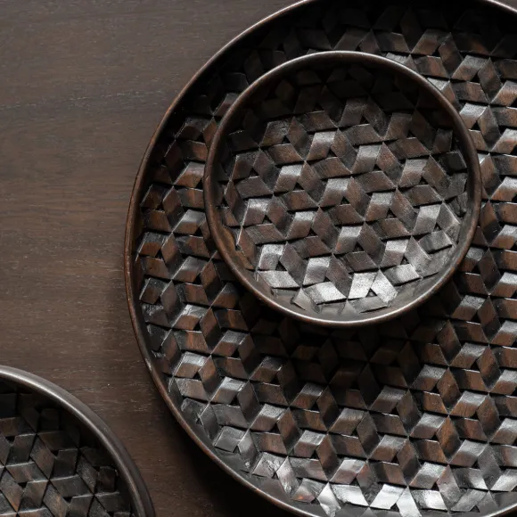 À La Fois Fonctionnels Et Décoratifs, Ces Plats En Acajou De Chez Ethnicraft Apporteront De La Délicatesse À Votre Décoration De Table Ou Votre Cuisine. Chaque Pièce Est Entièrement Sculptée À La Main, Pour Montrer Un Savoir Faire Digne D’Être Exposé.
