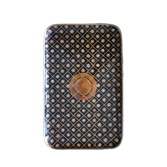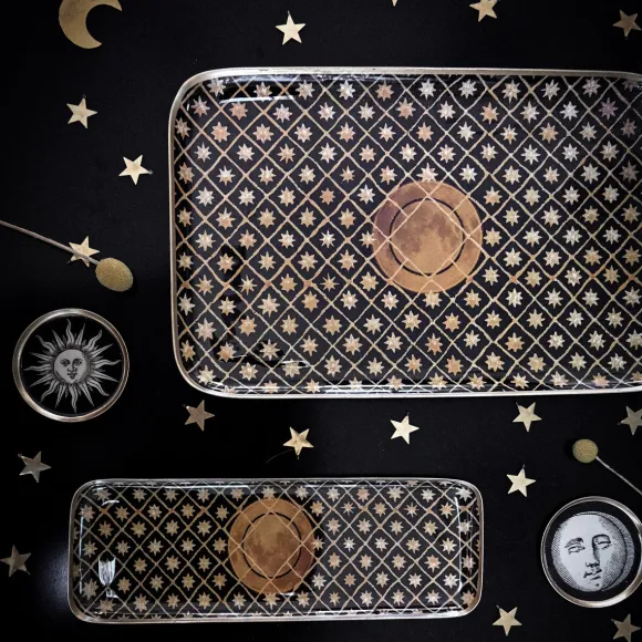 Plongez Sous Un Ciel Étoilé Avec Le Plateau Céleste De La Marque Française Boncœurs !Ces Motifs Cosmiques Aux Tons Ocres Associés Au Fond Noir Du Plateau Ainsi Qu’À Sa Bordure Dorée Apportent Chaleur Et Élégance À Cette Création. Ce Plateau Est L’Accessoire Parfait Pour Servir Vos Invités, Avec Raffinement, Pendant Les Fêtes.