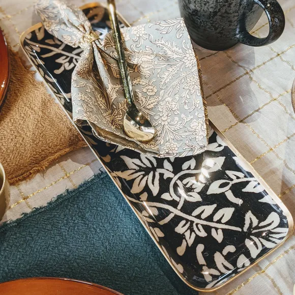 Plateau Duo Rameau De Boncoeurs En Aluminium Émaillé Et Une Bordure Finition Dorée À La Main. Pour Le Service Ou En Déco, De Jolis Motifs Inspirés Des “Block Print” Indiens Se Retrouvent Partout Dans La Maison. Finesse Des Dessins, Sens Du DéTail Et ÉLéGance Des Lignes Font De Ces Plateaux Des Pièces Uniques ! De Fabrication Artisanale, Les Plateaux Peuvent Donc Être Sujets À De Légères Variations De Formes Et Couleurs.