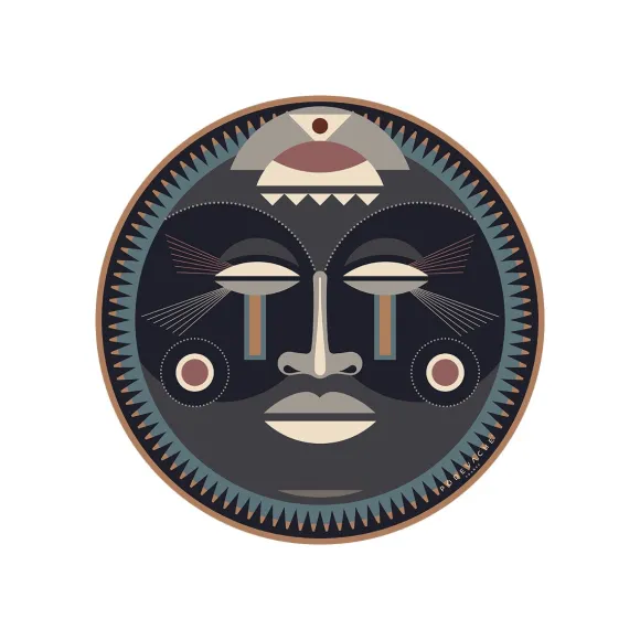 Set De Table Rond Masque Africain Dourou En Vinyle – O 38 Cm